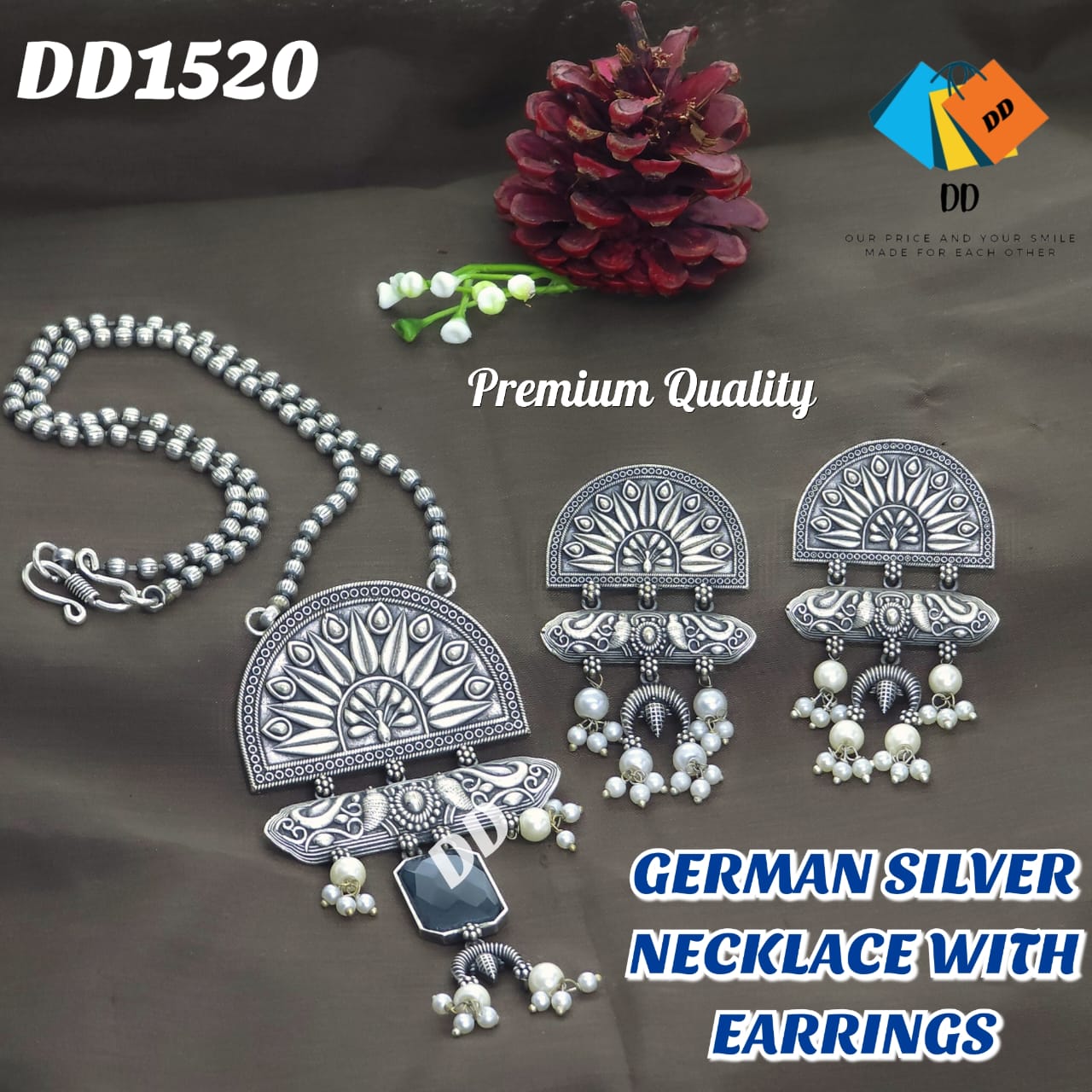 GERMAN SILVER NECKLACE WITH EARRINGS – PREMIUM QUALITY