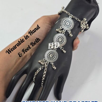 OXIDISED HAND BRACELET WITH RING - WEARABLE IN HAND AND FOOT BOTH ₹65.00PIECE