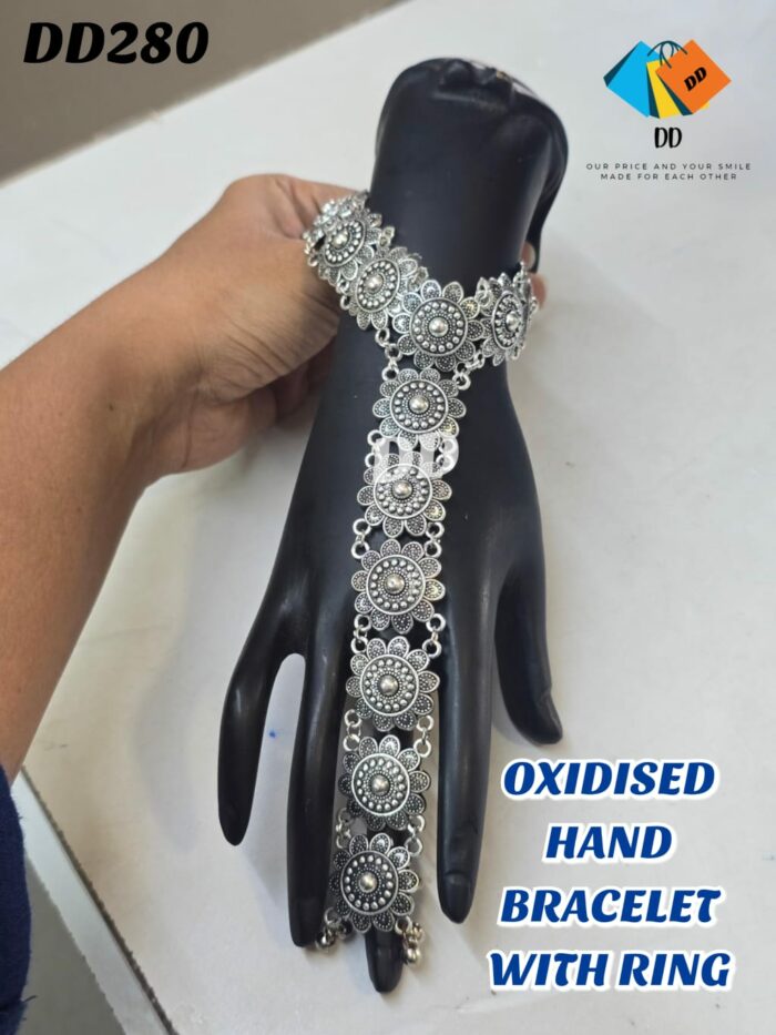 Home All Products DD JEWELLERY SHOP OXIDISED HAND BRACELET WITH RING – GOOD QUALITY