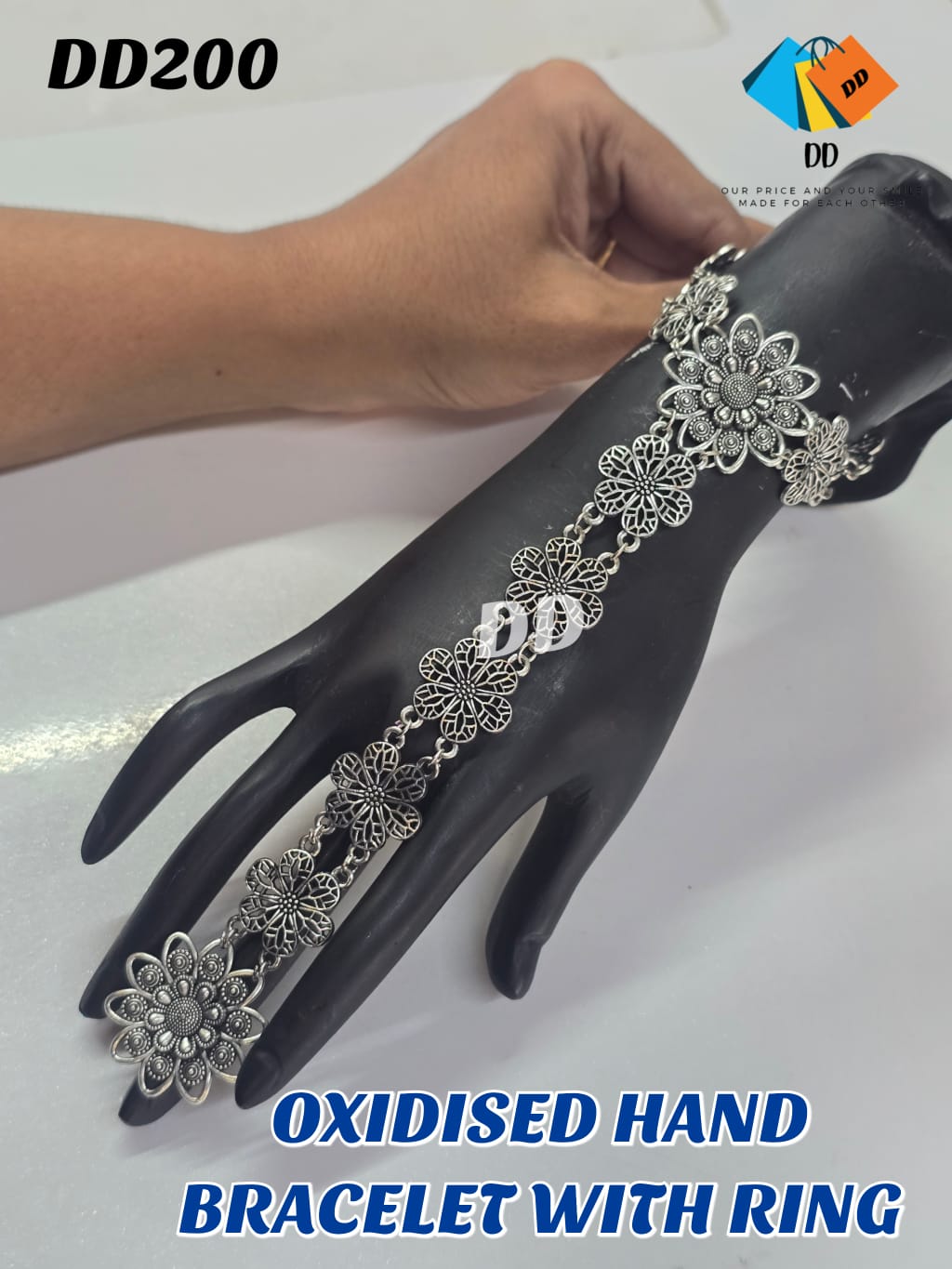 OXIDISED HAND BRACELET WITH RING – GOOD QUALITY
