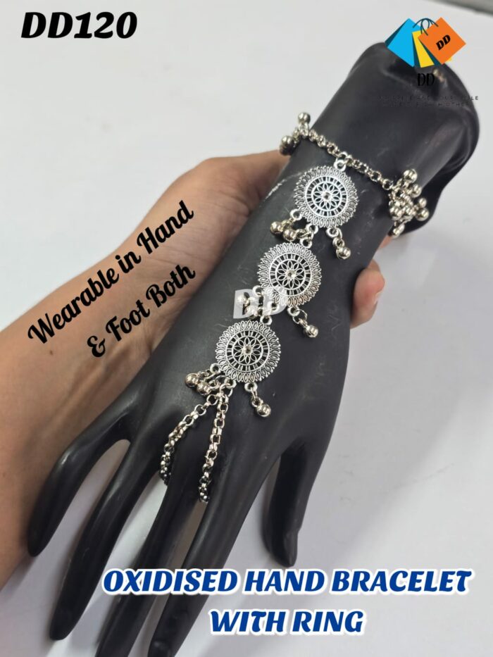 OXIDISED HAND BRACELET WITH RING – WEARABLE IN HAND AND FOOT BOTH