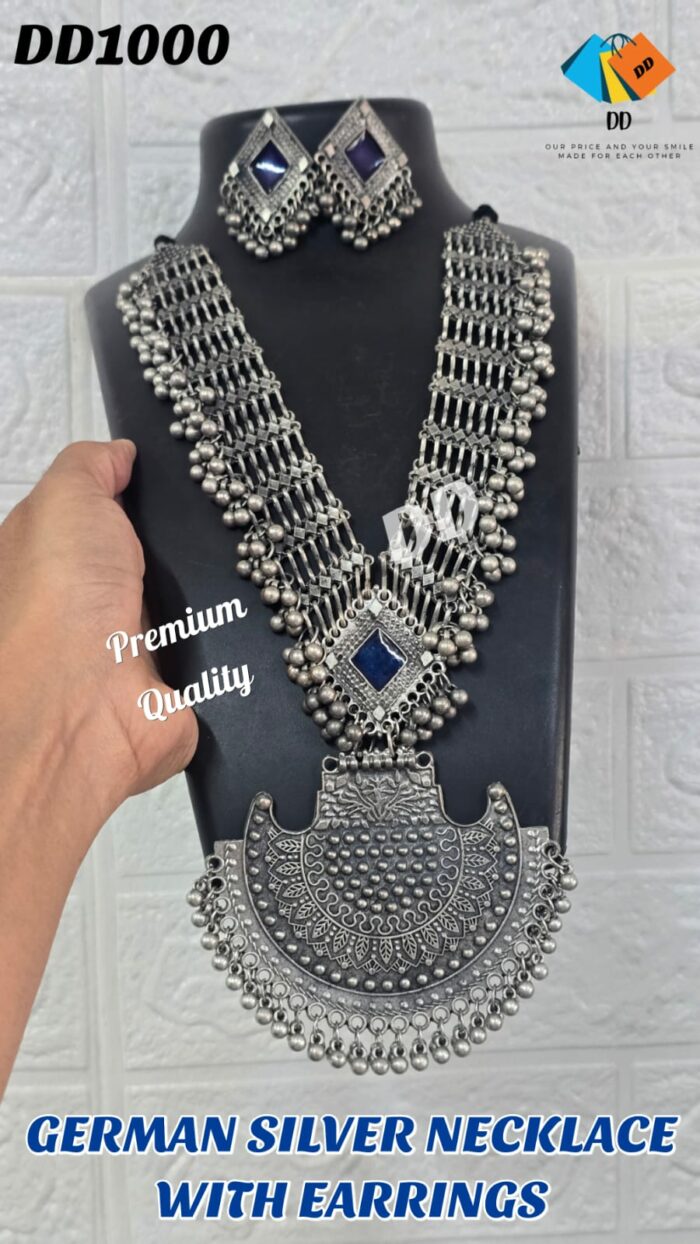 GERMAN SILVER NECKLACE WITH EARRINGS – PREMIUM QUALITY
